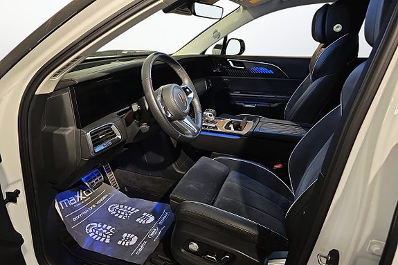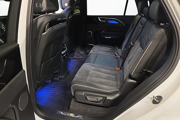 Interiøret er som hentet fra en luksuslounge, med god plass til tre personer i midtre rad, og en romslig tredje rad som gir plass til hele familien – eller gjestene. Alt pakket inn i en stille, elektrisk kjøreopplevelse med solid rekkevidde og kraftig firehjulstrekk.