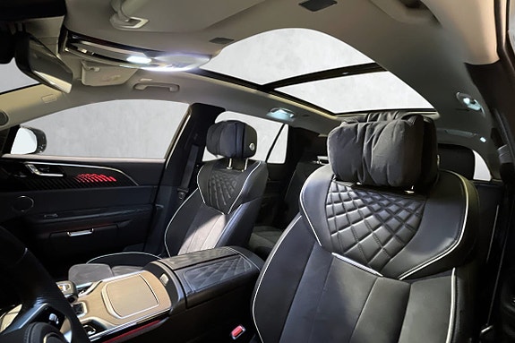 Innvendig møtes du av et påkostet og stilrent interiør med alcantara- og skinnseter som gir en ekte premiumfølelse. Den romslige kupeen byr på høy komfort for alle passasjerer, forsterket av 4-soners klimaanlegg som sikrer behagelig temperatur uansett hvor du sitter. Det store panoramasoltaket slipper inn rikelig med lys og gir en luftig og eksklusiv atmosfære.