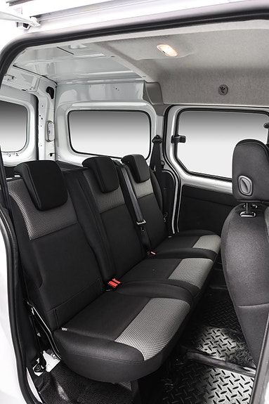 Praktisk 5-seters design: Modellen er en “Crew Van” (mannskapsbil) med en fleksibel 60/40-delt bakseteordning som lar deg justere lastevolumet avhengig av passasjerbehov. Dette gjør den til en multibil som enkelt tilpasses ulike oppgaver.