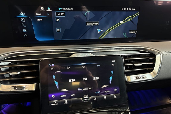 Det store panoramataket slipper lyset inn og gir en luftig romfølelse, mens det avanserte 360 parkeringskameraet gjør manøvrering overraskende enkelt – til tross for bilens imponerende størrelse. På motorveien glir du av gårde med adaptiv cruisekontroll som tar seg av tempo og avstand, og navigasjonssystemet sørger for at du alltid finner raskeste og beste vei frem.