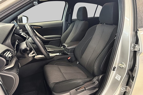 Komfortable stoffseter med smart midtkonsoll for hverdagsbruk.