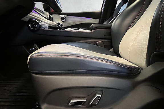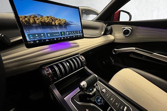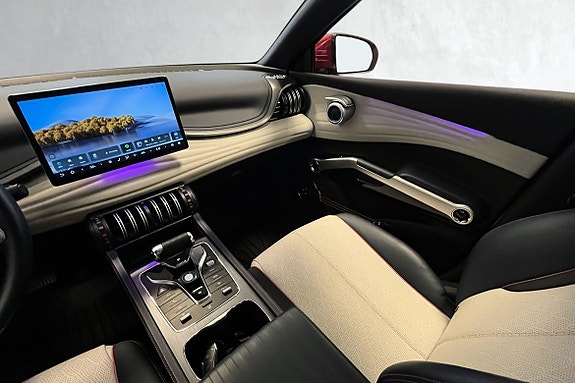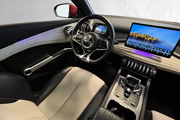 Bilen har et sporty og lekkert design, med fantastisk komfort i alle ledd. Setene kommer i vegansk skinn, med 6-veisjusterbart førersete og 4-veisjusterbart passasjersete. Et stort panorama glasstak sørger for mye naturlig lys i kupeen, samt LED-belysning som kan justeres i forskjellige fargetoner, og sørger for behagelig belysning når mørket senker seg.