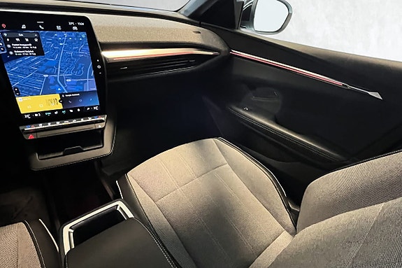 Den SUV-liknende fronten og det kompakte karosseriet gir et unikt utseende. Megane E-Tech Electric er bygget på en plattform med helt flatt gulv. Den brede strukturen og det nye OpenR-dashbordet frigjør ekstra plass: 209 mm beinplass i baksetet, og 33 liter oppbevaringsplass.