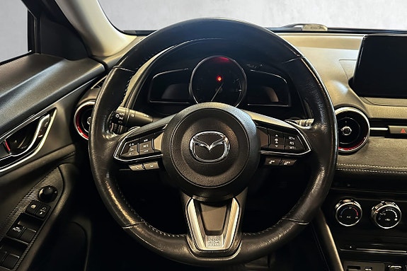 Mazda CX-3 2019 | 121 hk | Automat | 2WD | Bensin Mazda CX-3 er en kompakt og sporty crossover som kombinerer høy sitteposisjon med smidige kjøreegenskaper og moderne design. Denne 2019-modellen leveres med automatgir, 2WD (forhjulstrekk) og en drivstoffeffektiv bensinmotor på 121 hk, som gir behagelig og responsiv kjøring både i by og på landevei.